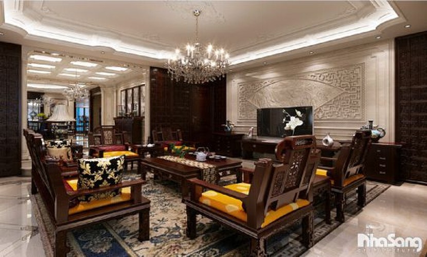 Gỗ giáng hương, cẩm lai, gỗ mun… là những gợi ý dành cho nội thất phòng khách nhà bạn. Ảnh: Noithatlandm