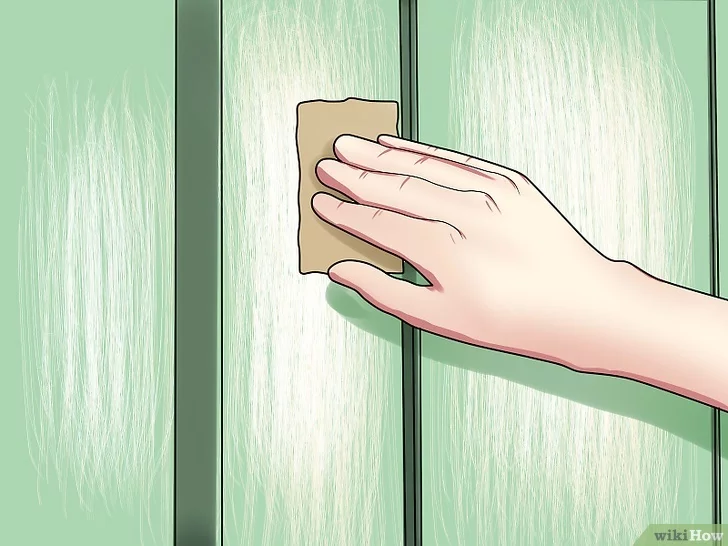 Bây giờ bạn có thể chà láng bề mặt gỗ - dùng giấy nhám đúng loại để chà. Giấy nhám sẽ giúp bạn làm láng bề mặt đồ gỗ và loại bỏ những vết sơn còn lại.