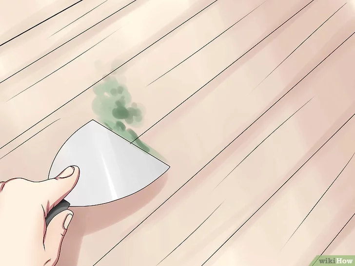 Đầu tiên, bạn cần đảm bảo đồ gỗ không bị ướt. Nếu ướt, bạn hãy dùng giẻ hoặc máy sấy tóc để làm khô, thậm chí bạn có thể dùng súng thổi hơi nóng đặt ở khoảng cách an toàn với cửa để tránh cháy sém hoặc không may xảy ra cháy. Luôn luôn đi găng tay bảo hộ để tránh bị phồng rộp hoặc bị dằm đâm vào tay, đồng thời đeo mặt nạ và sử dụng các phương tiện bảo hộ cần thiết khác.