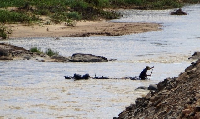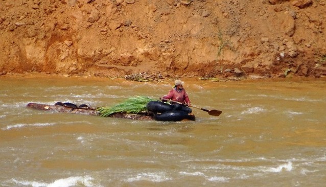 Những công nhân làm thuỷ điện ở đây cho biết, cứ 3 - 4 ngày lại có những tốp người điều khiển bè gỗ ngang nhiên đi về xuôi.