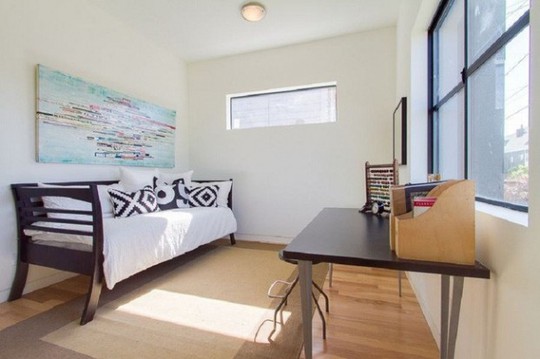 Phía trên tầng hai, không gian đọc sách khá đơn giản được kết hợp thêm một ghế sofa dáng dài giúp chủ nhân có thể thoải mái đọc sách. Cửa sổ lớn giúp đón được ánh sáng tự nhiên vào nhà.