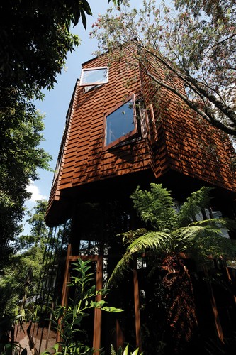 Nhà bằng gỗ nhìn như tòa tháp giữa rừng cây