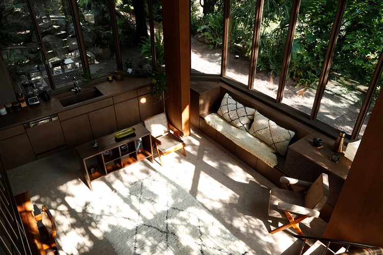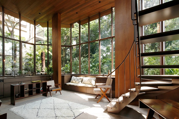 Trong khi phần phía dưới của ngôi nhà được làm từ thép và kính để chịu lực thì phần phía trên lại được bọc bằng gỗ.