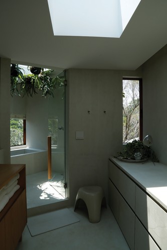 Trong khi đó, phòng tắm cũng đầy nắng và màu xanh của cây cỏ.