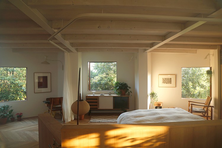 Phòng ngủ được thiết kế mở hoàn toàn, không hề có tường ngăn.
