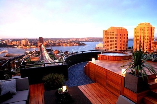 Sân thượng này được bố trí bồn tắm, giúp cho chủ nhân vừa thư giãn, vừa ngắm nhìn thành phố từ trên cao. Ảnh: Homedesignlover.